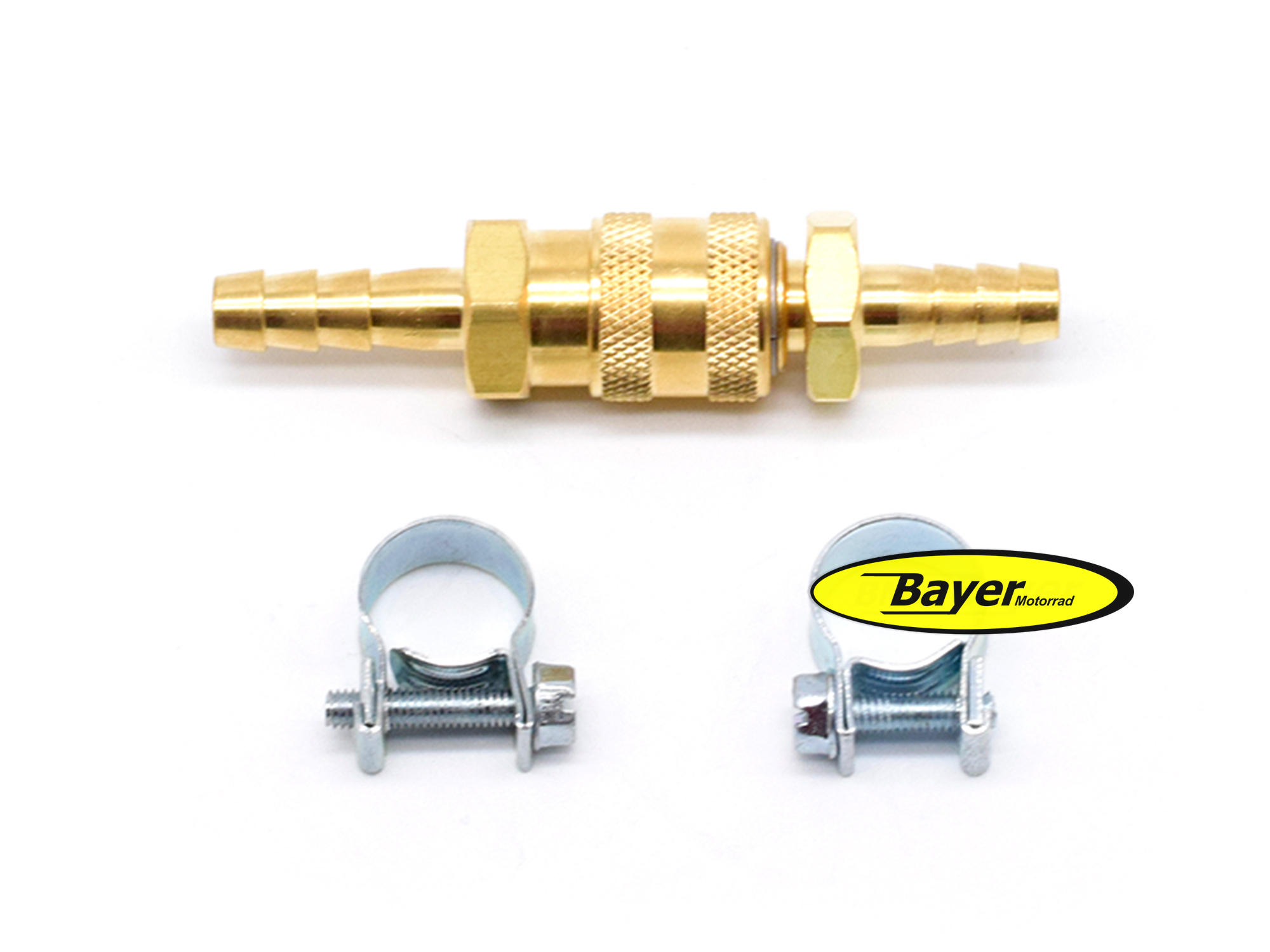 Schnelltrennkupplung aus Messing für 8mm Benzinschlauch incl. 2 Schlauchschellen