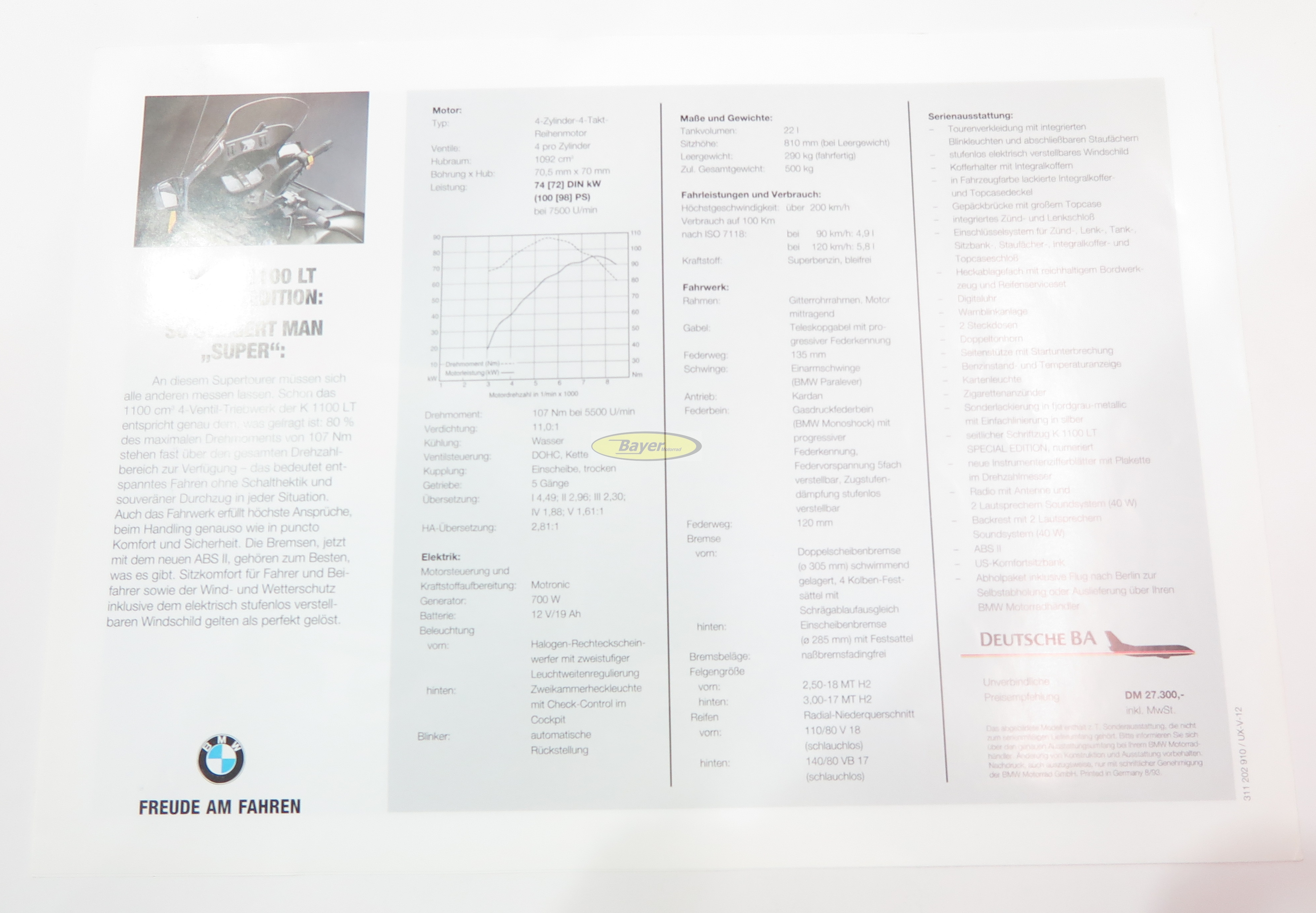 Alkuperäinen BMW K1100LT erikoispainos esite